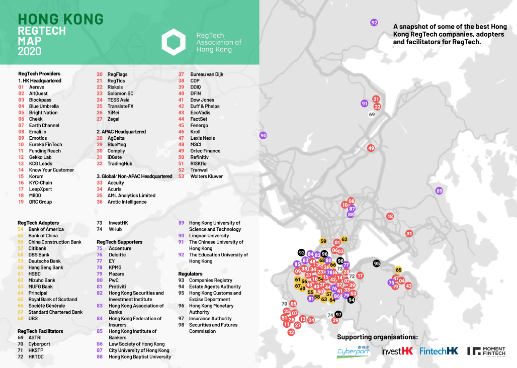 The study also contains a snapshot of 100 Hong Kong RegTech stakeholders, half of which are some of the best home-grown RegTech startups and solution providers, portraying a blueprint of the strong and growing Hong Kong RegTech ecosystem.